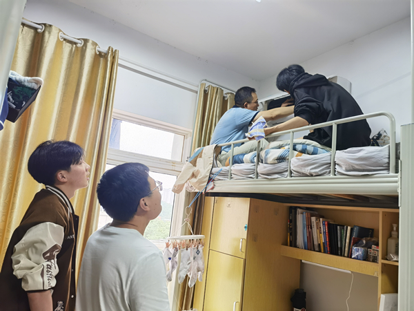 江中新闻网讯(通讯员 熊水明)为推动学院学习贯彻习近平新时代中国特色社会主义思想主题教育抓深做实,6月8日下午,针灸推拿学院党委负责人和辅导员深入学生寝室,调查走访,了解学生的思想动态和学习生活情况,着力解决学生“急难愁盼”问题。