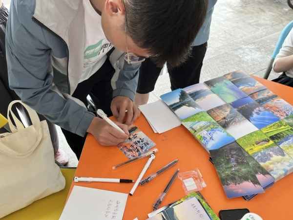 此次活动共分为三个板块。在“我与母校共成长”活动中,毕业生积极踊跃参加,在体育馆外,通过在明信片上留言,写下青春寄语,写出对学校学院发展建设的意见建议和对未来人生的憧憬。在“薪火传递”活动中,毕业学长学姐结合职业规划、考研升学、水平测试、考公求职等方面在1301教室近距离交流,向学弟学妹传授学习经验。在“那些年,我们一起度过的青春”毕业留影活动中,学弟学妹帮助毕业学长学姐记录大学生活的点点滴滴。