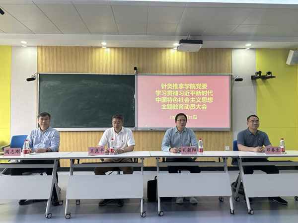 江中新闻网讯(通讯员 熊水明)为贯彻落实学校党委学习贯彻习近平新时代中国特色社会主义思想主题教育动员大会精神,4月21日,针灸推拿学院党委在教学楼1308召开学习贯彻习近平新时代中国特色社会主义思想主题教育动员大会,学校第二督导组组长王良平同志出席会议,针灸推拿学院全体师生党员参会,会议由学院党委负责人主持。