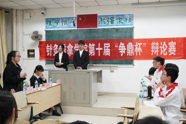 江中新闻网讯(通讯员 熊水明 李小玉)为提高同学们的思辨能力、逻辑能力、沟通能力以及信息搜集能力,3月29日至4月13日,针灸推拿学院学生会在明志楼2210教室举办了第十届“争鼎杯”辩论赛活动。