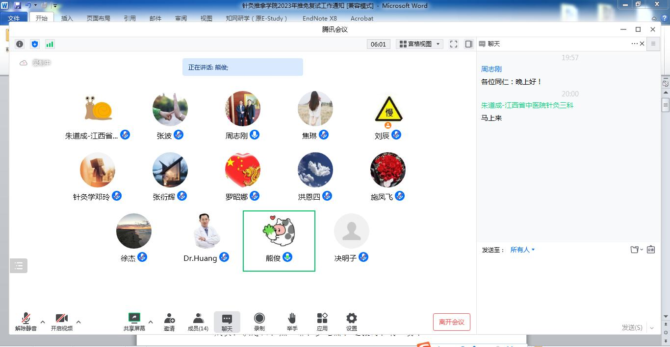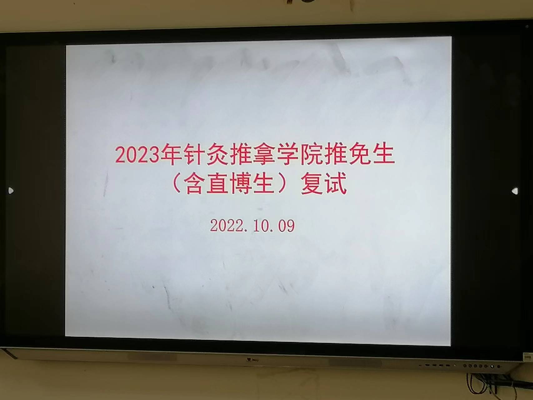 10月2日我院接学校通知:组织2023年研究生推免(含直博生)招生工作。为了做好我院2023年推免复试工作,根据《江西中医药大学2023年推免生(含直博生)复试工作方案》的通知精神,于10月4日制定出针灸推拿学院院招生工作方案,10月5日召开学位评定委员会,成立针灸推拿学院2023年推免生(含直博生)招生工作领导小组和推免复试工作小组,并由周志刚院长任组长。10月7日完成出题工作并签署保密协议,10月9日我院克服时间紧迫、招生系统生疏、人员流动大等多重困难,最终圆满完成了招生工作。