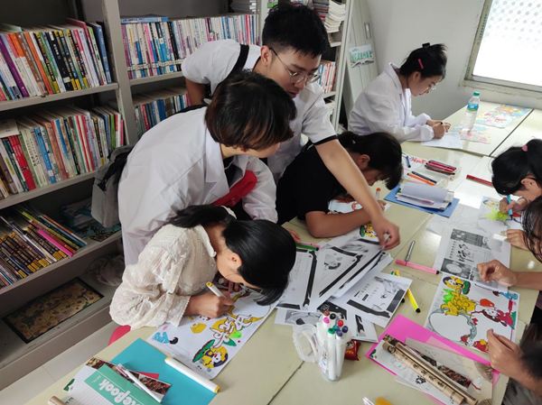 在进行防治结核的宣讲中,村民的反响强烈,进一步了解到肺结核要及时发现,及时治疗,完全治愈。志愿服务队带着南阳村“童心港湾”的孩子们一起画画、折纸,陪伴留守儿童,补齐缺失亲情,为孩子们带来快乐,看到孩子们脸上的笑容,灿烂了每一位志愿服务队员的内心。